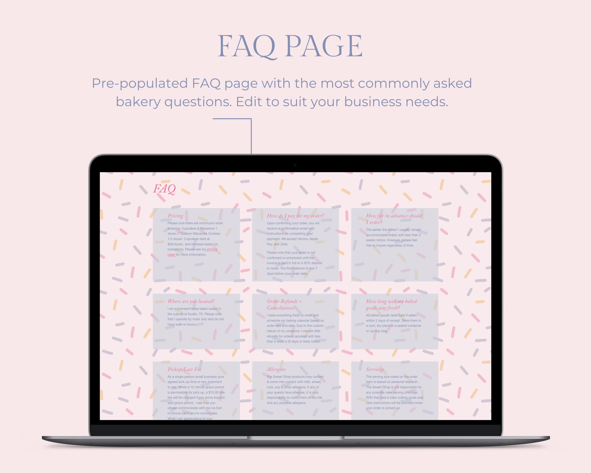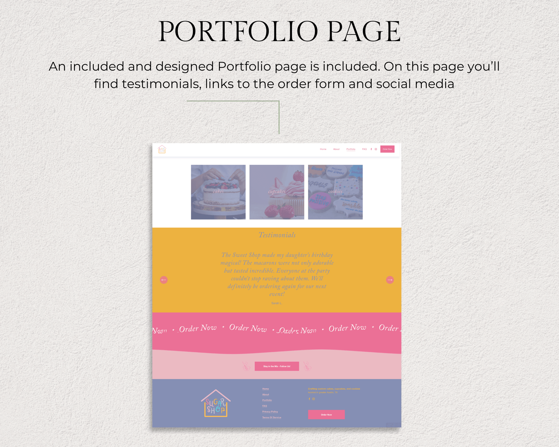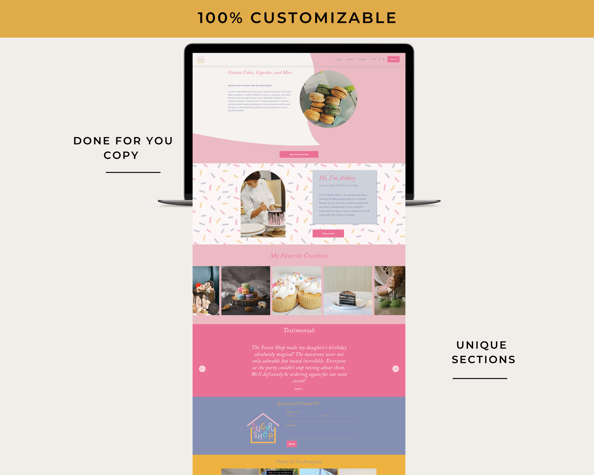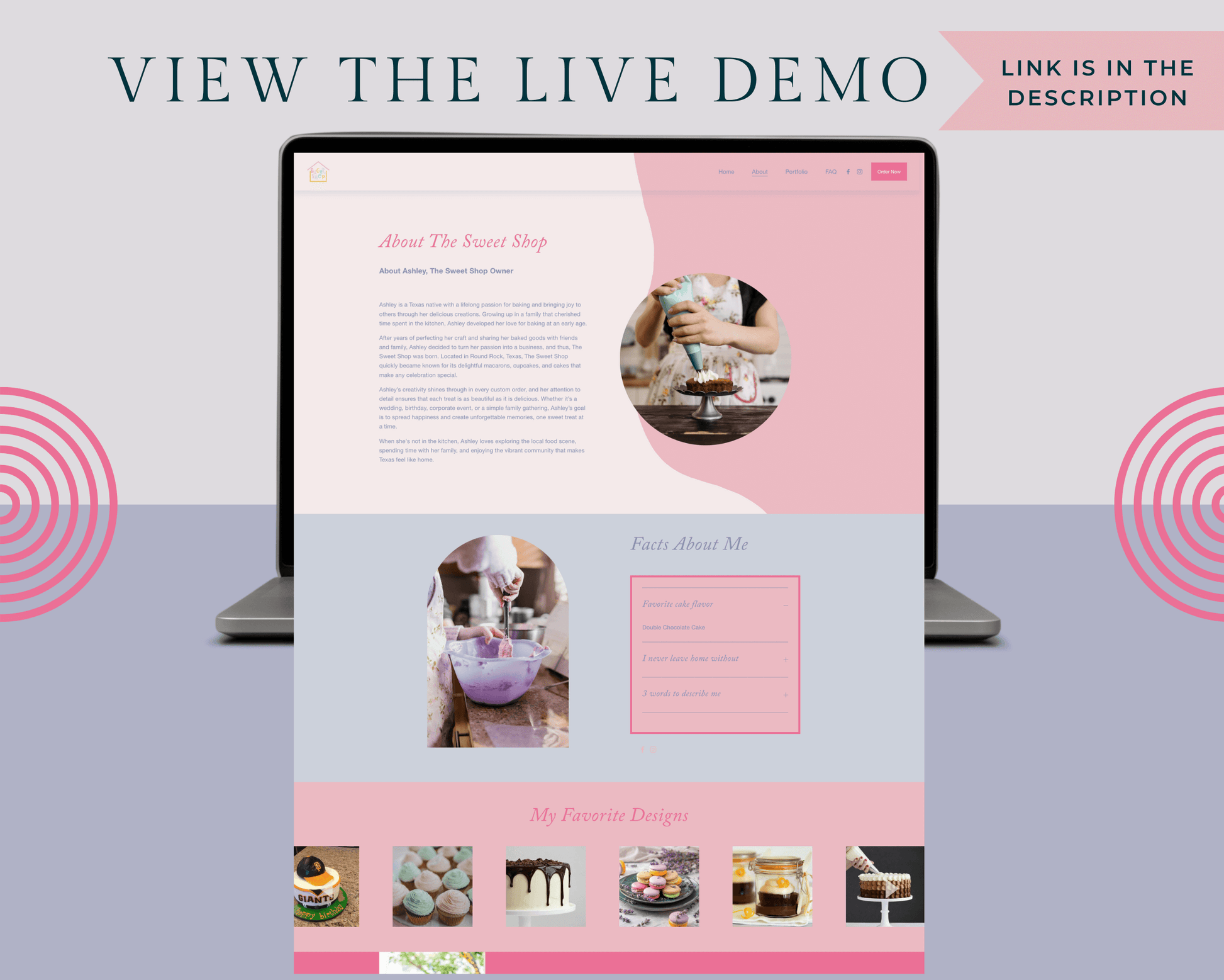 This Squarespace website template for home bakers is perfect for showcasing your delicious creations and enhancing your brand, whether you're specializing in cakes, cupcakes, cookies, or macarons. Designed for cottage law home bakeries, this Squarespace website template offers a professional and modern bakery web design that’s fully customizable to suit your brand. Elevate your online presence with an easy-to-use web design for cake bakeries that beautifully highlights your custom cakes and baked goods.
