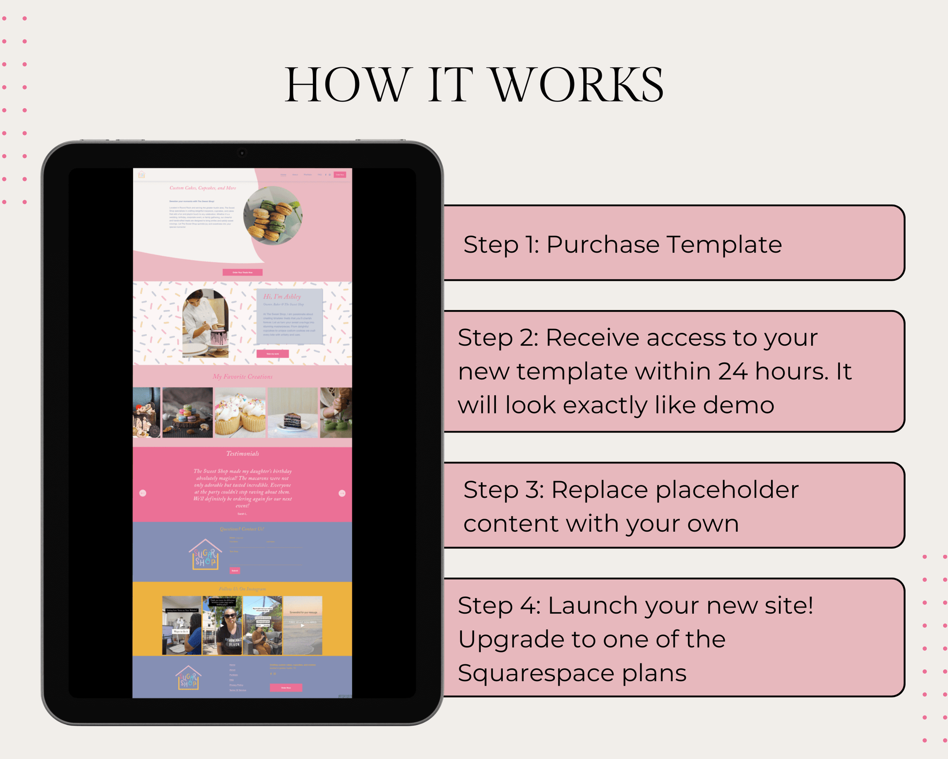 Please ensure you have a separate Squarespace hosting plan. New users should wait to purchase a plan until after receiving the template. Existing users with a plan should review the note above. If you have a domain, connect it to the new site; if not, purchase one through Squarespace after receiving the template.